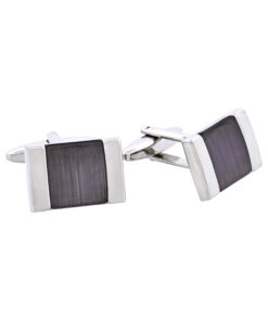 Rhodium Plated Striped with Purple Cat’s Eye Cufflinks