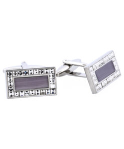 Rhodium Plated Grey Cat’s Eye & Crystal Rectangle Cufflinks