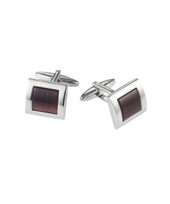 Rhodium Plated Rectangle Cufflinks with Double Maroon Cat’s Eye Inlays