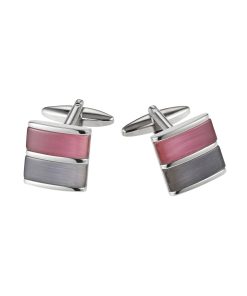 Rhodium Plated Grey & Pink Cat’s Eye Cufflinks