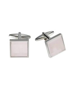 Rhodium Plated Pink Mosaic Cat’e Eye Square Cufflinks