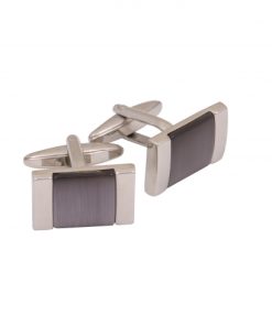 Rhodium Plated Grey & Charcoal Cat’s Eye Rectangle Cufflinks