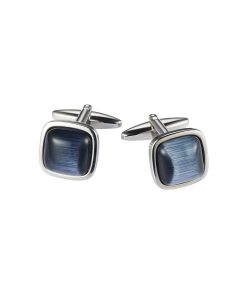 Rhodium Plated Dark Blue Cat’s Eye Square Cufflinks