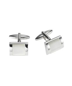 Rhodium Plated Rectangle Cufflinks with Curved Face White Cat’s Eye Inlay
