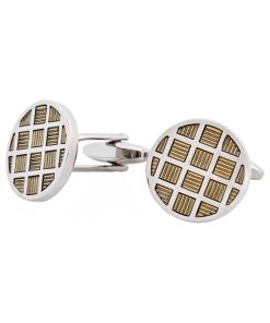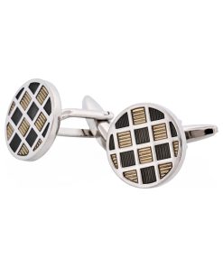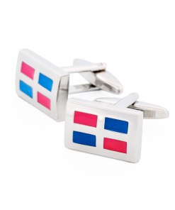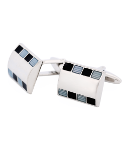 Polished Rhodium Plated Rectangle Cufflinks with Small Square Blue & Black Enamel Inlays