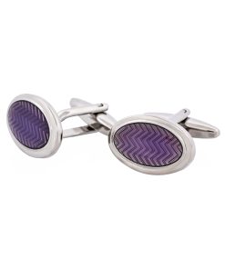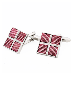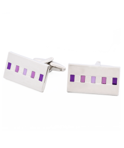 Polished Rhodium Plated Rectangle Cufflinks with Screw Details & Pink To Purple Enamel Inlay