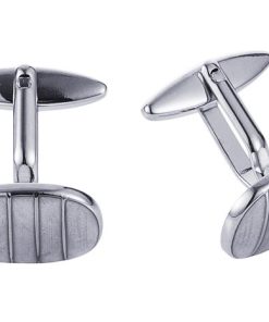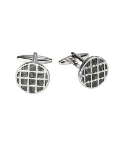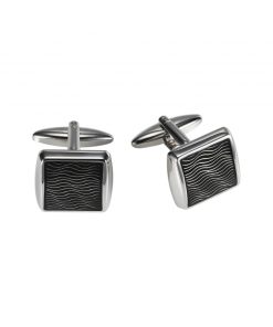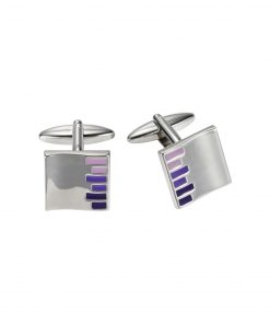 Polished Rhodium Plated Square Cufflinks with Black Grey Mint & Azure Striped Enamel