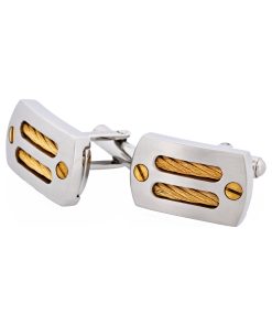 Brushed Stainless Steel Black Cable Wire & Gold Plated Screws Cufflinks