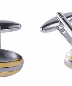 Rhodium & Gold Striped Plated Oval Cufflinks