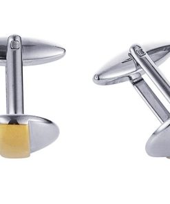 Polished Stainless Steel & Brushed Ion Plated Yellow Gold Cufflinks
