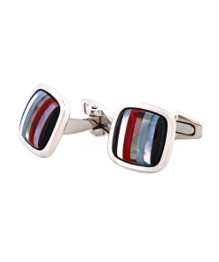 Rhodium Plated with Onyx & Mop & Hemataite & Black Lip Red Glass Cufflinks