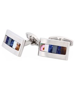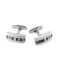 Polished Rhodium Plated Square Cufflinks with Mother Of Pearl, Grey Mop & Onyx Inlays