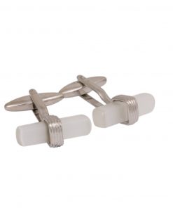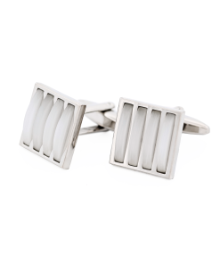 White Enamel Striped Cufflinks