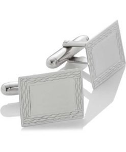 Polished Rhodium Plated Sterling Silver Rectangle Cufflinks with Engine Turn Frame