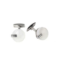 Polished Rhodium Plated Sterling Silver Cufflinks with Double Mother of Pearl Inlays