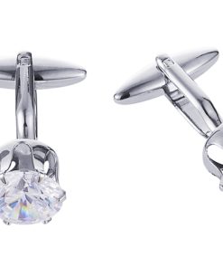 Rhodium Plated Diamond Shaped Crystal Cufflinks