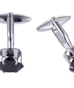 Rhodium Plated Diamond Shaped Jet Crystal Cufflinks