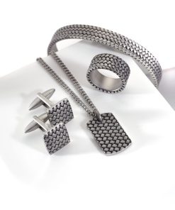 Stainless Steel Sandblasted Tyre Patterned Cuff/Bangle