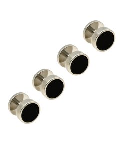 Rhodium plated and round Onyx Screw Shirt Studs (set of 4)