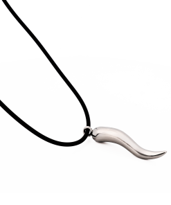 Stainless Steel Black Striped Beaded & Leather Neck Chain