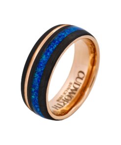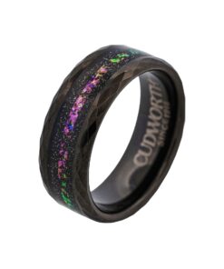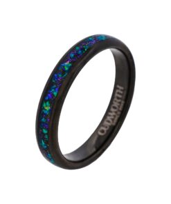 Tungsten Ring, Aurora Streamline – Slim black tungsten ring with shimmering opal inlay