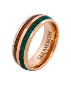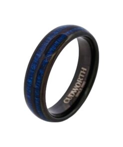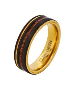 Tungsten Ring, Emberwood Classic – Gold tungsten ring with matte black and wood inlay