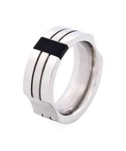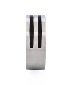 Brushed Stainless Steel and Double Striped Black Enamel Ring