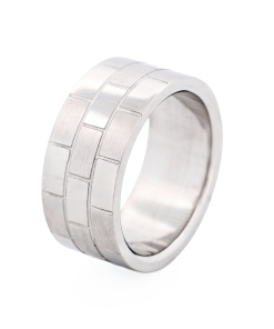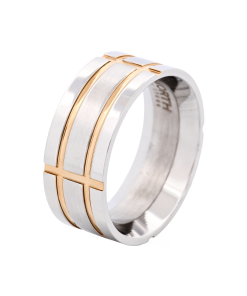 Brushed Stainless Steel & Ion Plated Yellow Gold Indented Grid Ring