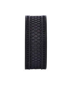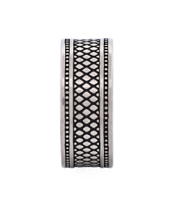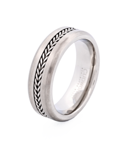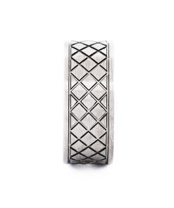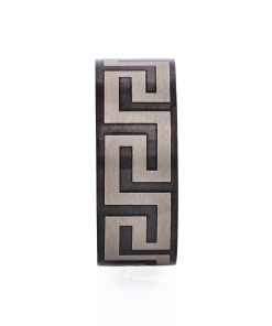 Ion Plated Black Stainless Steel Ring with Frosted Greek Key Pattern