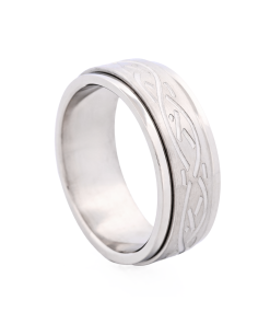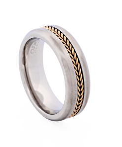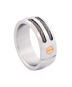 Brushed Stainless Steel with Ion Plated Yellow Gold Mesh Centre Band Ring