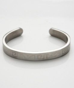 Brushed Stainless Steel Bangle & Cuff – Etched Greek Key Pattern