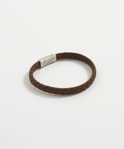 Thin Brown Italian Leather & Stainless Steel Bracelet