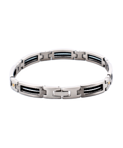 Stainless SteelIon Plated Gold & Black Leather Cable Carbon Fibre Bracelet