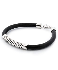 Stainless Steel Curb Link Chain & Black Cord Bracelet
