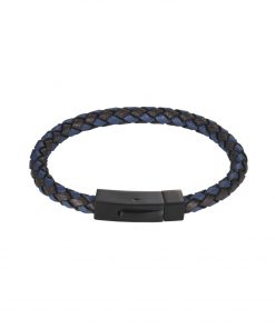 Black Leather Plaited Bracelet with Antique Plated Stainless Steel Clasp