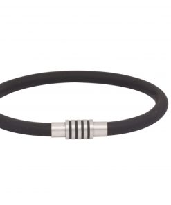 Black Neoprene Rubber Bracelet with Ion Plated Black Enamel Stripes on Stainless Steel Clasp