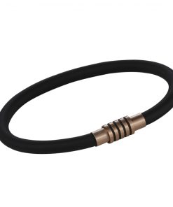 Black Silicone Bracelet with Ion Plated Black Stripes On Ion Plated Rose Gold Stainless Steel Clasp