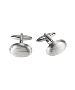 Brushed & Polished Rhodium Plated Oval Striped Cufflinks