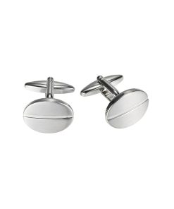 Brushed Polished Rhodium Plated Oval Cufflinks with Polished Centre