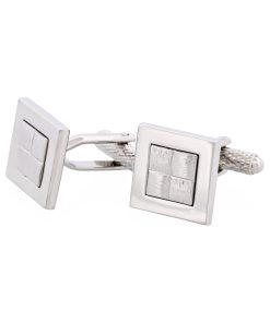 Brushed Rhodium Plated Block Patterned Cufflinks