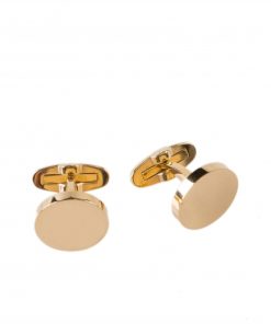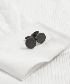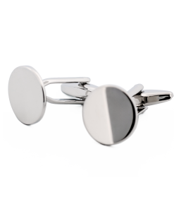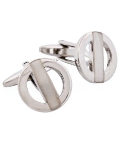 Polished Rhodium Plated Round Cufflinks with An Oval Grey Mother Of Pearl Inlay