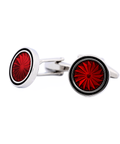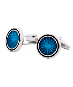 Polished Rhodium Plated Round Cufflinks with Striped Quartile Pattern