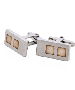 Polished Rhodium Plated Sterling Silver Cufflinks with Double Mother of Pearl Inlays