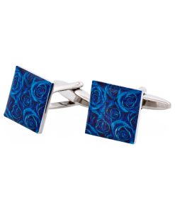 Blue Enamel Shape on Rhodium Plated Cufflinks