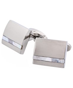 Polished Gold Plated Cushion-Shaped Cufflinks with Mother Of Pearl Inlay