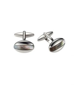 Polished Rhodium Plated Oval Cufflinks with Mosaic Design Blue Mother Of Pearl