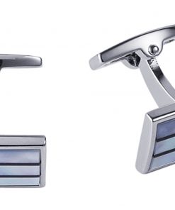 Polished Rhodium Plated Onyx & Mother Of Pearl Stripe Rectangle Cufflinks