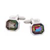 Rhodium Plated Grid-Cut Cushion Shape Cufflinks