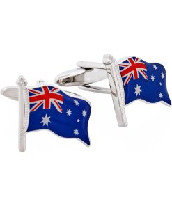 Enhance your business attire with these Australian Flag Wave Cufflinks by Cudworth. They feature a unique wave design with the unmistakable Aussie flag, offering a stylish way to showcase your national pride. Ideal for formal events or business meetings, these cufflinks add a personalised touch to any outfit.