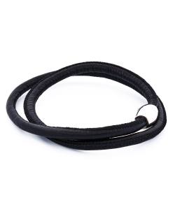 Add a sophisticated touch to your outfit with this Black Lamb Leather Double Wrap/Stainless Steel Bracelet from Cudworth. Perfect for the modern man, it seamlessly combines ruggedness and luxury. The lamb leather gives it a comfortable fit while the stainless steel detailing adds a contemporary edge. This versatile piece can be worn casually or dressed up, making it a great addition to any jewellery collection.